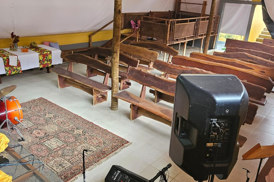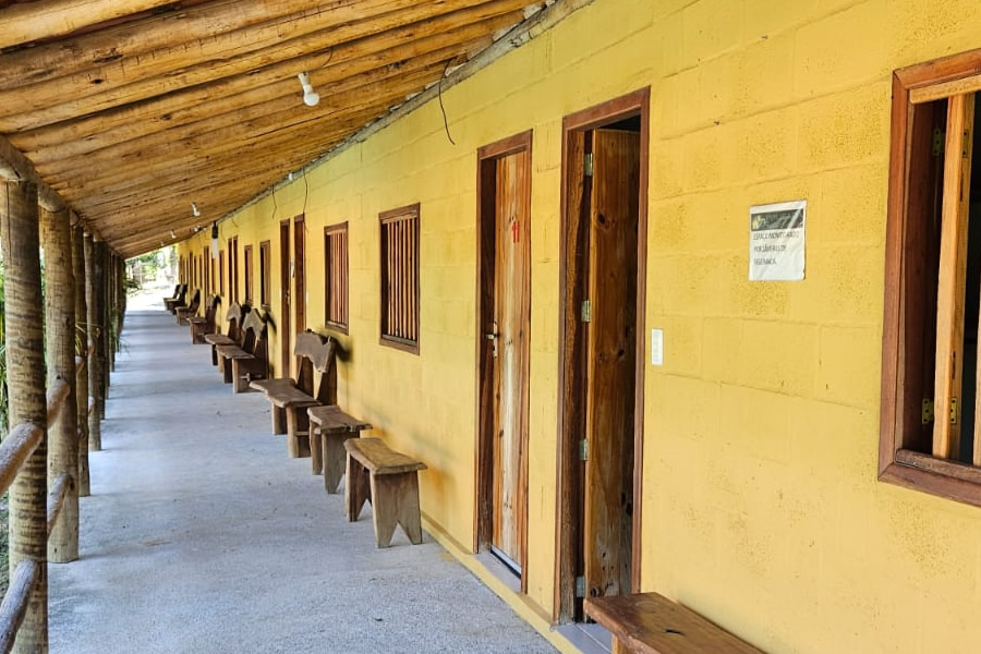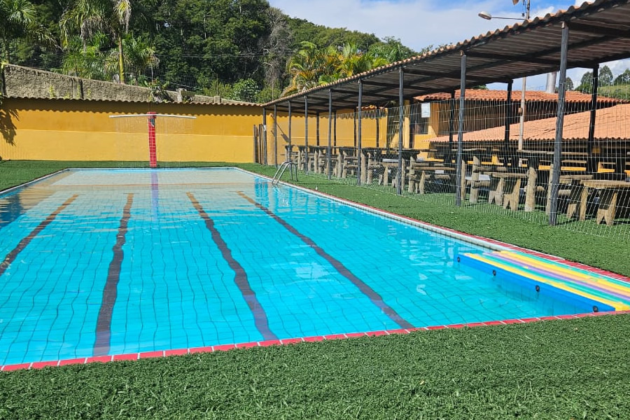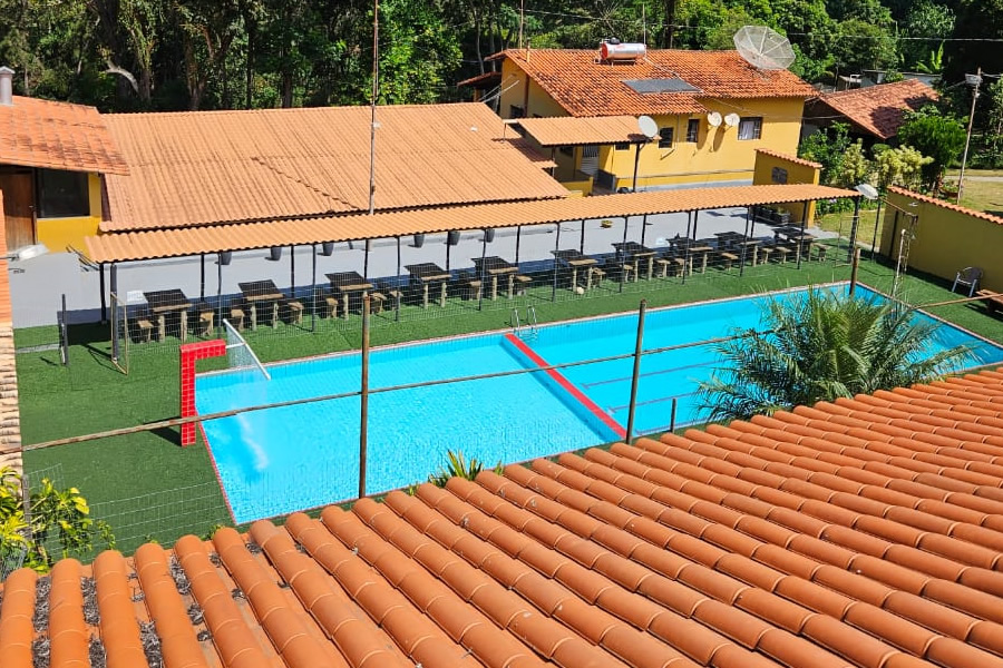 Contamos com ambiente exclusivo e equipado para a realização do seu evento, com capacidade para grupo de 30 a 70 pessoas, com acomodações em chalés/suítes; com opção para 75 acomodações em chalés. Estrutura com amplo espaço coberto, possuindo mesas rústicas , fogão industrial, fogão à lenha, churrasqueiras, frezers, geladeira, etc; o espaço coberto é composto por um palco para shows e mesas retangulares de blindex- rústico; possui piscina com 20m X 6m com espaço com cobertura com mesas rústicas à beira da piscina; possui um salão de jogos com cinuca, totó, Ping pong etc; amplo espaço gramado arborizado rodeado por uma natureza exuberante. Possui , ainda campo de futebol gramado , quadra de vôlei/peteca e um amplo estacionamento.